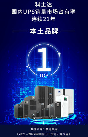 ? ? ? 科士達是一家專注于數據中心(IDC)及新能源領域的智能網絡能源供應服務商。 多項國內外產品質量/安規(guī)認證,是業內認證非常齊全的全線產品供應商之一。2019年公司繼續(xù)保持在工商銀行、農業銀行、中國銀行、建設銀行、平安銀行、招商銀行、民生銀行等銀行的目標入圍,和通訊行業中國移動、中國聯通、中國電信的電源設備選型入圍。匠心經營27載,成為中國不間斷電源產業領航者!